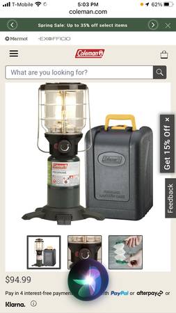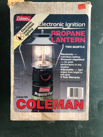 Coleman Northstar 1500 lumens propane lantern includes case $50.00. Coleman electronic start propane lantern $10.00.