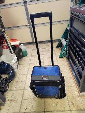 This is a high quality tackle bag in great shape, with wheels. The bag will come with multiple salt water jigs, hooks and some other things included. It also has a 'rain cover' built-in to the bag. I have reached the age where I will not be using this gear anymore.