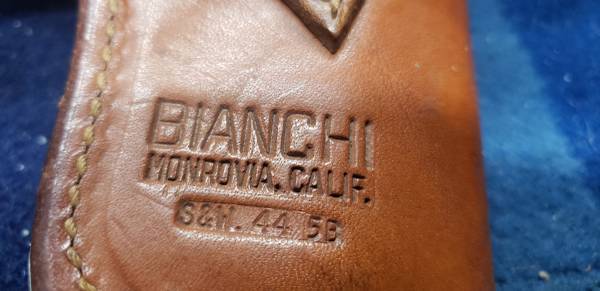 The holster is marked.. Bianchi Monrovia, Calif S & W 44 5B And the belt is marked Bianchi 34.