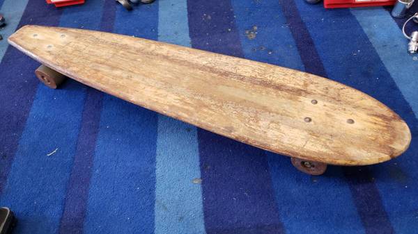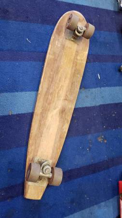 Has original wheels and in pretty nice shape but does show it's age. About 30" long.