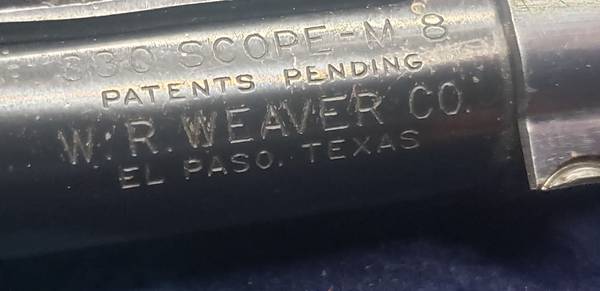 Original condition WWII era rifle scope, made by W.R. Weaver. Model 330 M8 Comes just as shown in the pictures and is about 11" in length.