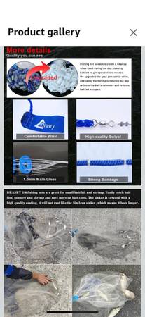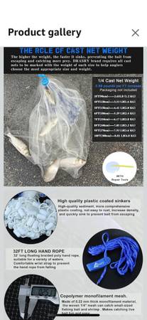 Drasry Saltwater Fishing Cast Net 3/8 and 1/4 Mesh with Heavy Duty Gray Sinker A - $20 (Huntington Beach)