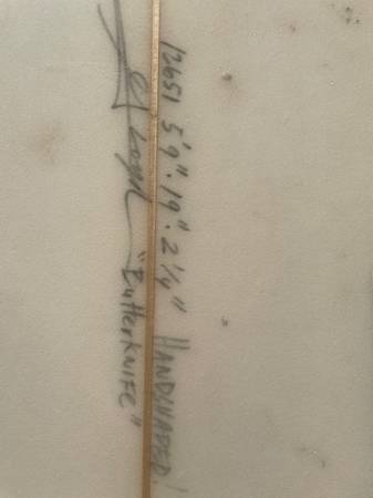 Lloyd Butterknife. Nose is dinged but otherwise in good condition. Unique graphic.