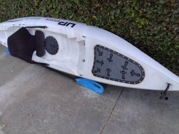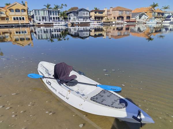This is a single hard shell kayak with a sleek design for the beginning kayaker or the more advanced thrill seeker included a updated carbon fiber paddle and a comfortable seat with backrest and adjust also bungees for hauling supplies when kayaking or traveling.