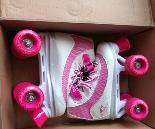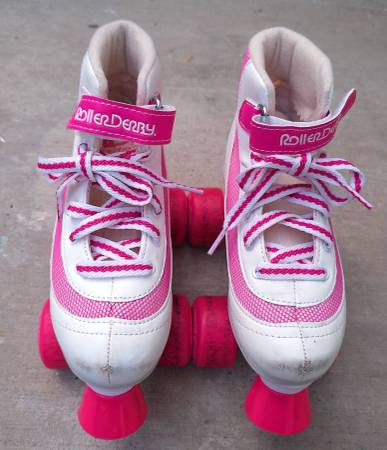 Used pink and white girl roller skates. Used only twice. Size 1, but they do run a little small.