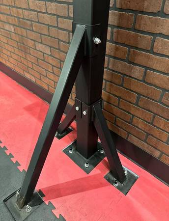Selling a complete heavy bag setup with a solid steel rack —used in kickboxing gym 9Round.