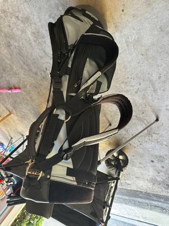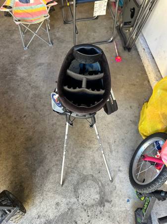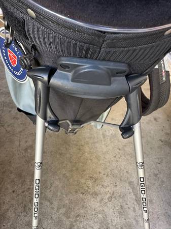 For sale used Ogio golf bag. All the zippers work well. The bag is missing a piece and so it doesn’t stand well. Please let me know if you have any questions.