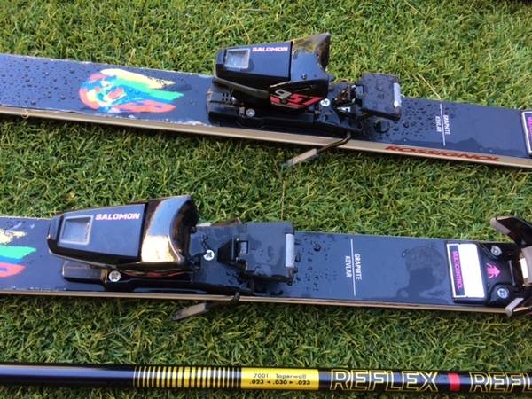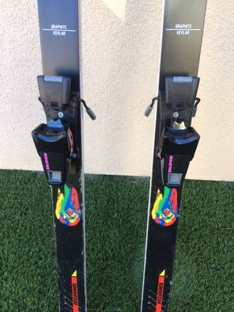 Near New Rare Vintage Rossignol Hi-End Kevlar/Graphite Solos (Racing) 195 with Solomon 957 Binding.