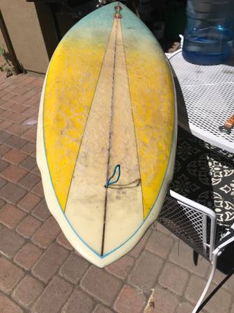 6’2 old school single fin, no major dings or delam fin included Keywords board, surf, skate, santa monica, west LA, los angeles, board, shortboard, al merrick, rusty, anderson, hobie, bay, bay...