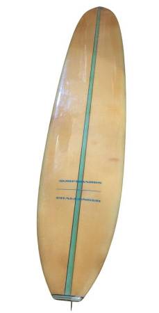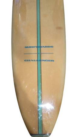 9’4 Bobby Challenger surfboard gloss finish D-Fin glass on, surfs good with classic foam & cloth weight.