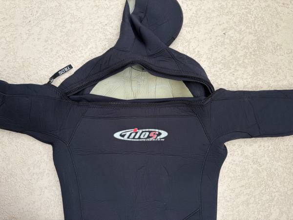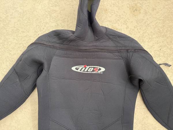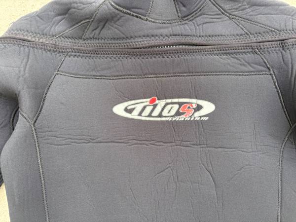 For sale is a Tilos Titanium 7mm Chest Zip Scuba Wetsuit in Mens Size XL. The wetsuit is in good pre-owned condition