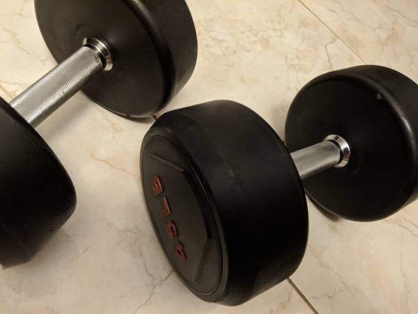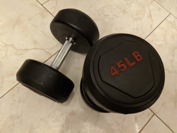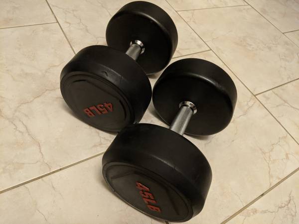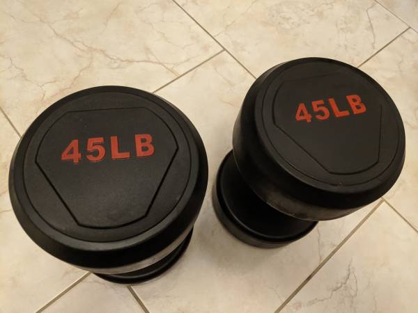 Cash only transaction. Item located in Irvine. When you see this post, the item is still available. A pair of 45 lbs dumbbells for sales. See pictures for details.