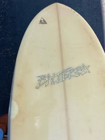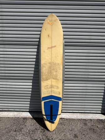 BALTIERA 8.0 Medium long board. Rides really nice. Easy and smooth. 22.5 wide. Balsa wood stringer. 3 fin. Rounded Pin. Floats well great to paddle out on. Sad to part with.