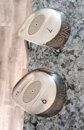 Ping i3 O-Size white dot irons and woods with Aldila 350 Series R-flex graphite shafts. Most have Lamkin JUMBO size grips, 3 with standard size grips, and 1 with no grip. PING 3,5,6,8,PW, SW, with 7...