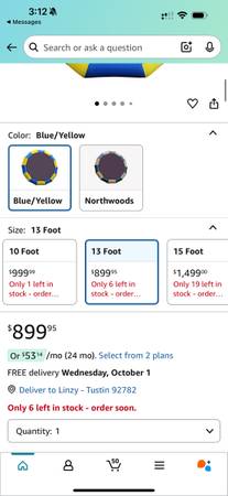 New in box. Never used. Bought a bigger one didn’t need this. RAVE Sports Inflatable Bongo Water Bouncer 13FT Recreational Water Trampoline with Ladder for lake or ocean or swimming pool.