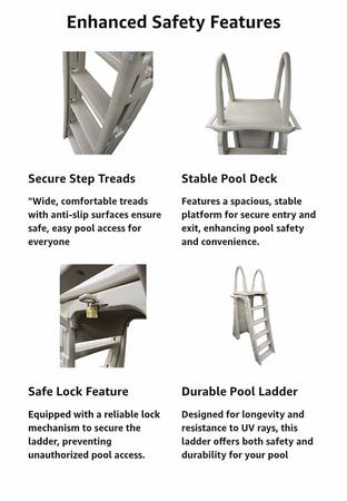 Safety A-Frame Ladder: A-frame safety ladder makes it easy to enter and exit your pool and accommodates pool heights from 48 to 56 inches tall; Supports up to 300 pounds.