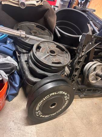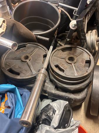 Like new gym set. Multi position bench, adjustable racks for bench or squat, 2 x 45 lb plates, 4x 35 lb plates, 2x 25 lb plates, and 2x 10 lb plates all cast iron rubber coated. Olympic hex squat bar, Olympic bench press bar. All for $700. New in store for this set is $1,200.00 new. I will sell weights and Olympic bar for $400. For sale by owner. No sales tax. It’s going to go quick.