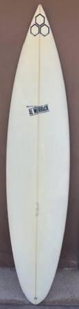 Brand New Never Ridden, 7'2" Channel Islands "MSG" Round Pin Step Up Gun, No Dings, No deck pressure dints, 1 small pressure dint on bottom, 19 1/2" wide, 2 7/8" thick, 10 5/8" nose, 13 1/8" tail, Future Fin Boxes, Great board for bigger surf, Hawaii, Mainland Mexico, Bali, Indo, Fiji, Blacks, CASH only, No Trades, No cashiers checks, No Venmo, Pick up only
