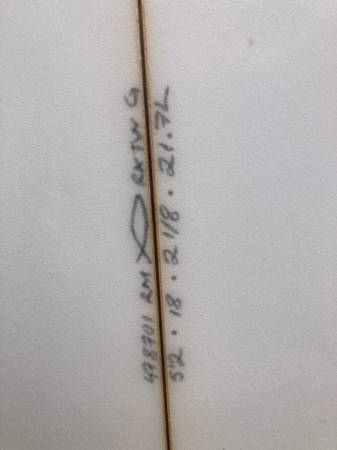5’2. 21.7 liters. Excellent condition. Minor chip on nose in picture. Includes Creatures of Leisure board bag.