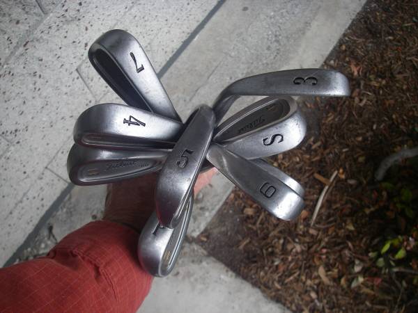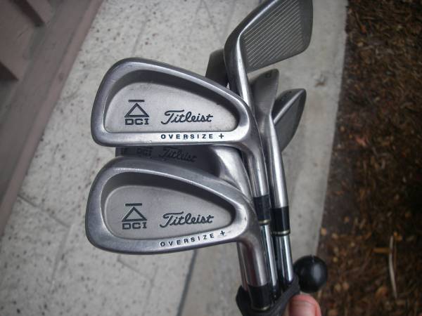set of classic Titleist DCI 981 Gold irons, DCI oversize, both 4 thru Pitching wedge. Classic irons from Titleist that are still design wise very current today. Big cavity back, oversize faces for super forgiving shots and huge sweetspot. Great for any skill level. True Temper steel shafts, R flex, also have newer grips,ord grips and Titleist Lite shafts. The DCI 981 set 6 iron is a DCA Titleist model, can't be told from the 981 but letting you know I have loads of other golf gear from drivers, woods, putters, hybrids etc. to fill out any needs. Bags, shoes, carts, you name it! Lots of Titleist drivers that would fit right in with these irons.