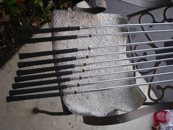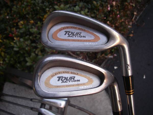 Great set of Cleveland TA Tour Action 5 irons. 3 thru 9 + P wedge + I'll include a Cleveland 60 lob wedge for the non grinder. I have lots of clubs to fill this out if you like! As I said, for any golfer but better golfer will get a lot out of these. Mid size heads, sleek TA 5 style for great game improvement! Great shot shaping etc. All Cleveland steel regular flex shafts, great grips and full set. Give a call Cleveland golf clubs Cleveland golf Taylor Made golf Titleist golf Nike Golf Ping golf