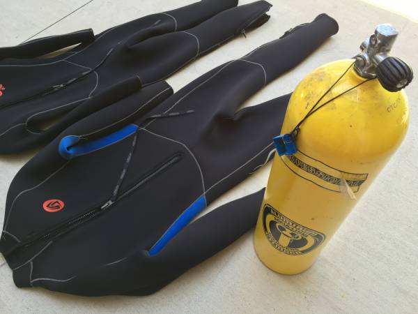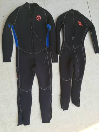 Men's and Women's wetsuit - LIKE NEW (used for only 4 days this past summer for US Navy Sea Cadet training). 1 Large, 1 Small. Nylon 19%. Neoprene 81%. Will sell for about 25% discount off retail...