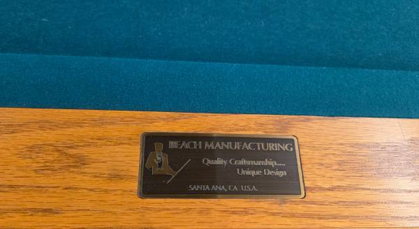 Pre-owned Hand Made Pool Table. Beach Billiards Oak table. 8 foot. This is a hard wood table with 1" slate. Because we don't know what kind of cloth you want or what grade of accessories you need, this listing only shows the table price. Also in Orange County some crews charge over nine hundred dollars for install, we can work with you on that at well.