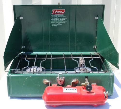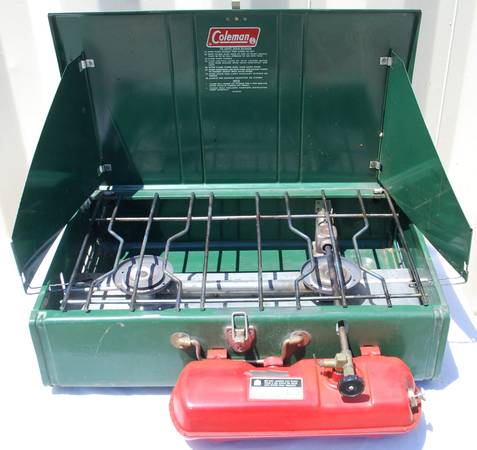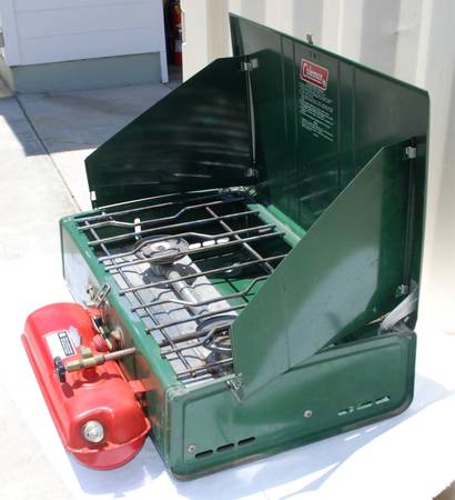 1979 Coleman 413G Two burner Camp Stove. Works as Designed COLEMAN MODEL 413G TWO BURNER CAMP STOVE 1979 IN USA Cleaned up pump Pressurizes great.