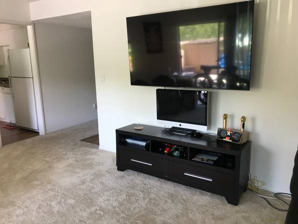 The bedroom is fully furnished with a very comfortable queen size bed, a brand new bed frame and headboard. New dresser, desk and large TV. The bathroom is very spacious and private.