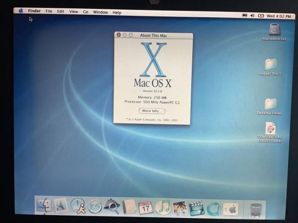 Mac PowerBook G3 500Mhz , 256Mb memory. Comes with power supply, external 3.5” drive and connector cables. Battery is dead, but works fine when plugged in. $95