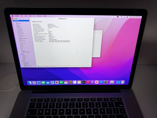 2015 Apple MacBook Pro 15 Model: A1398 Intel Core i7 Quad Core 2.2GHz 16GB DDR3 Memory 1TB SSD Hard Drive 15.4-inch Retina Display with 2880x1800 resolution Fresh reinstalled macOS Monterey Include...