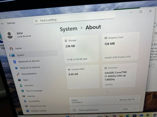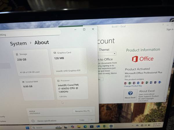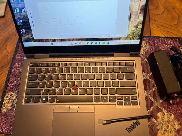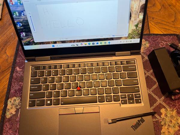 Thinkpad Yoga X1 convertible laptop that flips over to be a tablet if you need, can use as a touch tablet or with the included stylus. Can use the stylus to write notes, draw, present etc. It's got an 8th gen Intel i7 4 core 8 thread cpu, 256gb ssd 8gb ssd, has microsoft Office excel, powerpoint, outlook, access etc.
