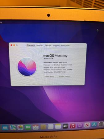 In perfect condition, works perfectly. Processor 1.6 GHz Dual-Core Intel Core i5 8GB of memory $125 OBO
