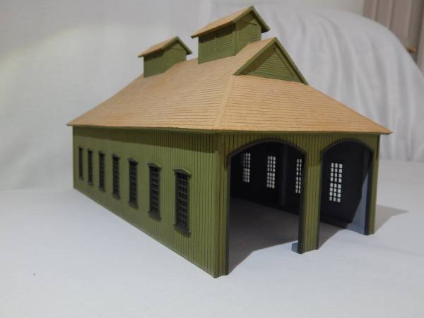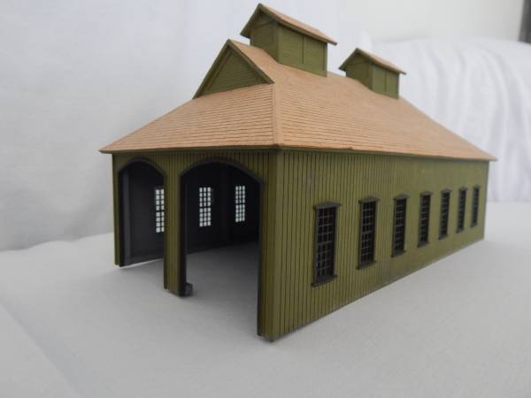 HO scale scratch-built CUSTOM wood craftsmen ENGINE HOUSE TWO STALL one of one. Fully finished interior and window glazing. Built and stored never used. Length 10 inches. Width 5 1/4 inches.