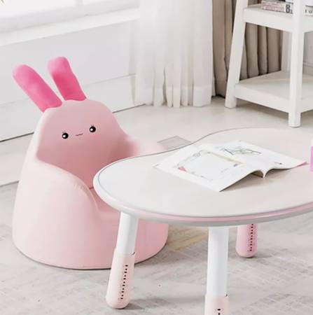Adorable pink bunny kids baby chair – super cute design with bunny ears and a friendly face.