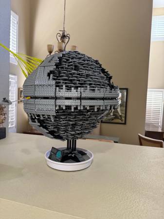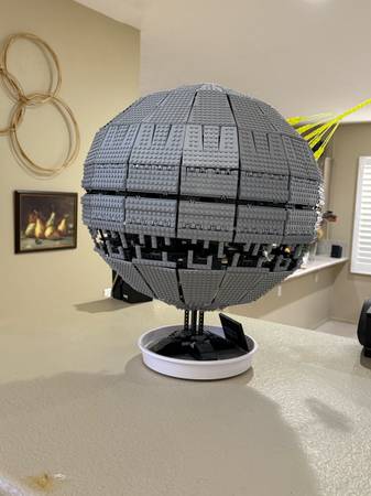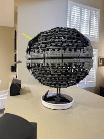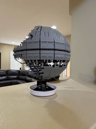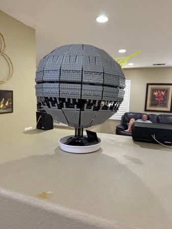 MOC Death Star brick set. Selling AS-IS Have instructions Just for fun, a tad dusty. Approximate 21” x 23”. Approximate 3,449 Pieces Turn table base not included. Text your best offer to: