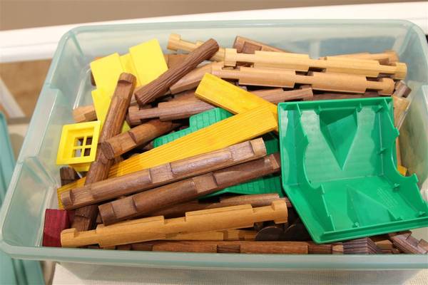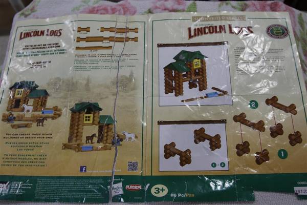 Vintage Lincoln Log set $25. Rare Card's Wood Works log cabin set $50. Both sets are in new condition. Please leave your name and number. Thanks.