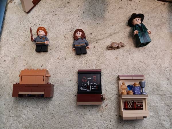 Have a whole bin of Legos for sale. Have a few sets that are missing some pieces but have a Harry Potter Wizarding World Model 76389 that seems complete. There are also Brickheads, a police car and many other varied pieces in the loose bin.