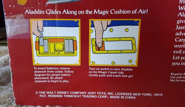 Disney Aladdin on Magic Flying Carpet Air-Hover Toy - VINTAGE -- $35.00 obo