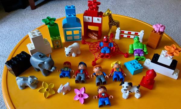 The listing includes 49 miscellaneous pieces of Lego Duplo and a few mega bloks included. Two of the Lego drawers open and close. If you see this ad, it’s still available. Thanks! No low ball offers...