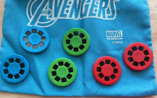 (3) MARVEL AVENGERS Book Set, 6 discs w over 30+ super hero images, a flashlight projector , and one carrying pouch. The books are in good used reading condition but might have some wear from being read. There may be some marks or scratches on some of the images when they are projected. The carrying pouch does have a couple of stains. The flashlight projector was tested and is in working condition. It does require (2) AAA batteries (not included). If you see this ad, it’s still available.