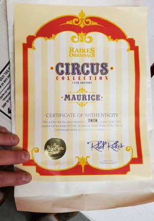 Robert Raikes Originals with Paperwork (no box) Maurice Circus Monkey Gorilla Ape 1994 Circus Collection. Part of my wife's collection of Raikes Bears. Sorry, pic shows leaning against the wrong...