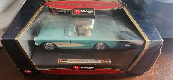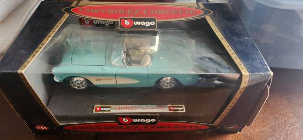 Bburago #3024 1957 Chevrolet Corvette Convertible 1/18 Scale Diecast - Teal kept stored box it is alittle damaged located in fountain valley CA