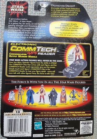 Star Wars Hasbro Episode 1 Destroyer Droid Comm Tech Action Figure - ONLY $15.00 obo ($16.00 on eBay) Now Figures Talk! Through a special reader with a CommTech Chip – Communication output memory...