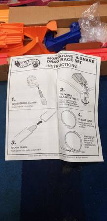 In very nice condition, all of the pieces look brand new actually and it is complete with everything aside from the 2 cars themselves are missing.