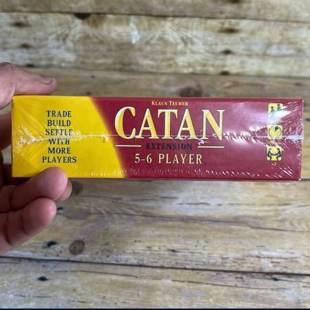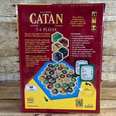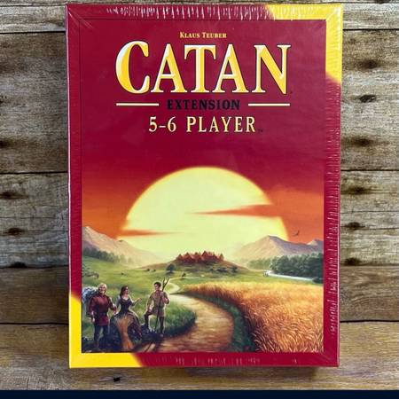 The Settlers of Catan 5-6 Player Extension Game by Klaus Teuber, This extension pack allows players to enjoy the popular Settlers of Catan game with an additional player, bringing the excitement and strategic gameplay to a larger group.