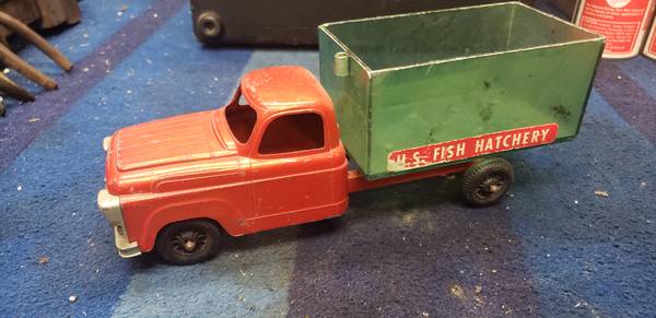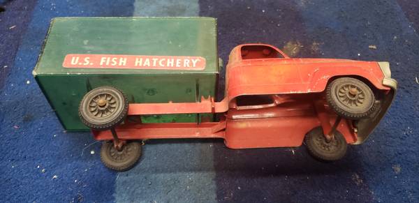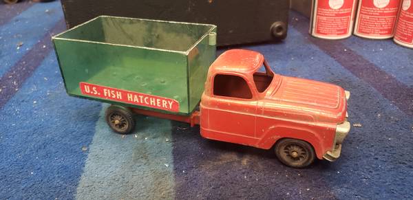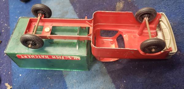 In nice shape over all, comes just as shown and is about 9 7/8" long. Die cast metal body with a plastic bed.