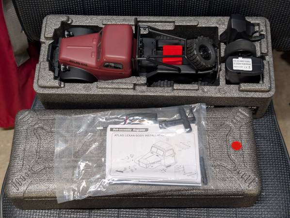 1/18 scale Atlas 6x6 Crawler. I opened the box but never drove it so it is essentially brand new, open box. Just provide 4 AA batteries, everything else is included