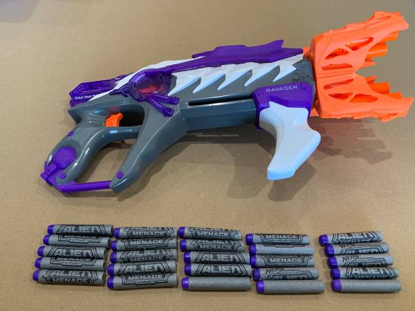 Pump-action blasting Rotating, 8-dart barrel Nerf Gun comes with 25 darts