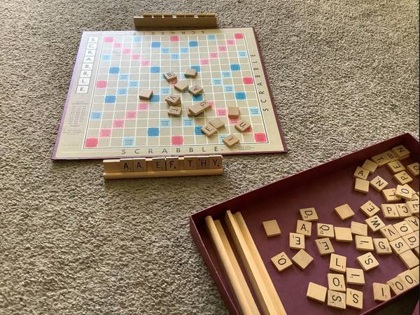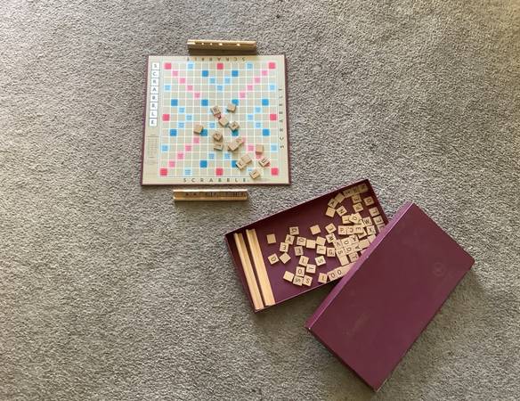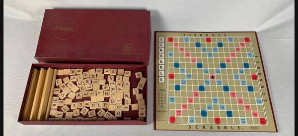 Vintage 1982 Scrabble board game set by Selchow & Righter Company of Bay Shore, New York. This well known family board game was first introduced by James Brunot in the summer of 1948, but Alfred Butts was the actual inventor. Since then the board and box have undergone some cosmetic changes, but the game and it’s pieces remain the same. This is a fun word game for 2-4 players. This is the fourth printed edition which dates from 1976, but this set was produced in 1982.